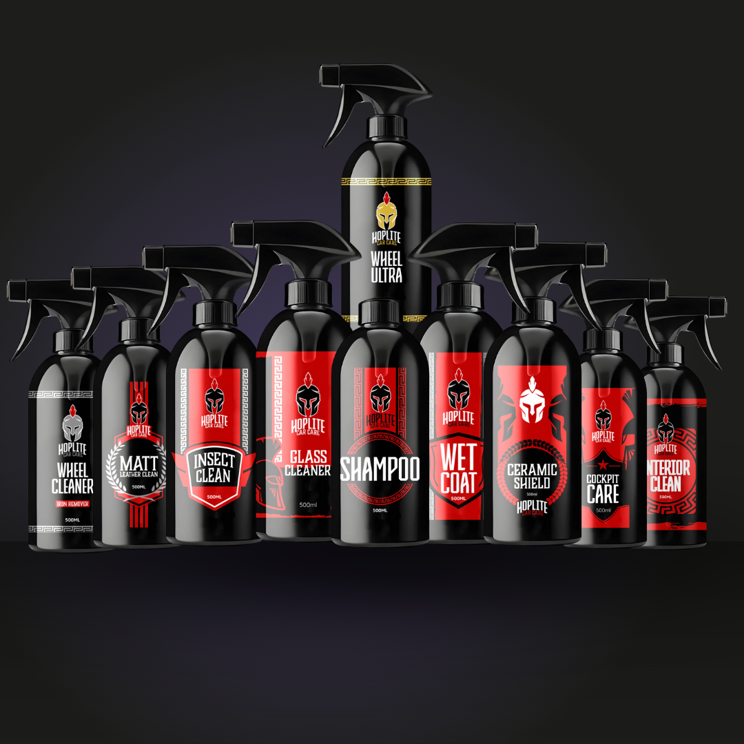 De Hoplite War Chest is onze meest complete bundel – samengesteld voor zij die niets minder dan totale reiniging én bescherming eisen. Alles wat je nodig hebt, van cockpit tot carrosserie, van velg tot vizier.
